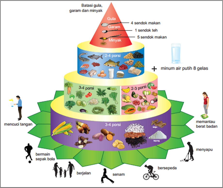 Banyak yang mengatakan “you are, what you eat” jadi, makanan yang kita makan adalah cerminan diri kita. Kalau kita rajin makan makanan ber- gizi maka tubuh kita insya allah akan tetap sehat, sebaliknya kalau kita malas makan makanan ber-gizi tubuh kita akan mudah sakit. Memang sulit mengubah kebiasaan tersebut, kita masih sering memakan makanan tidak bergizi seimbang seperti junkfood, tinggi gula, garam, minyak namun rendah vitamin, protein dan serat. Jika makanan tersebut dikonsumsi dalam jumlah banyak bakal beresiko terjadinya, kelebihan berat badan (obesitas), hipertensi, Diabetes, Penyakit jantung, Stroke, dan Kanker. Kita semua harus mulai menerapkan makanan sesuai dengan pedoman Gizi Seimbang.